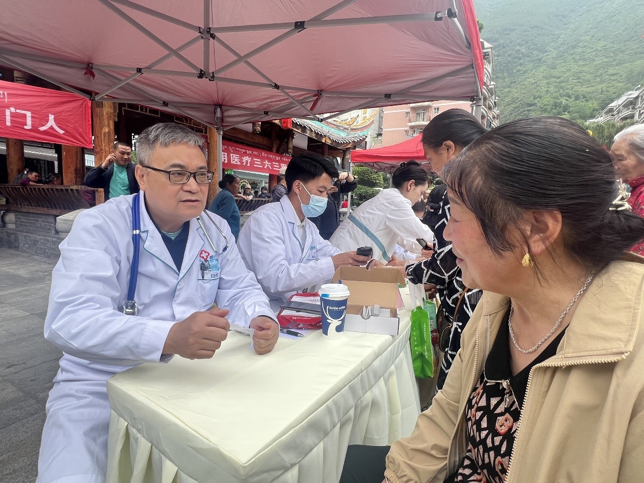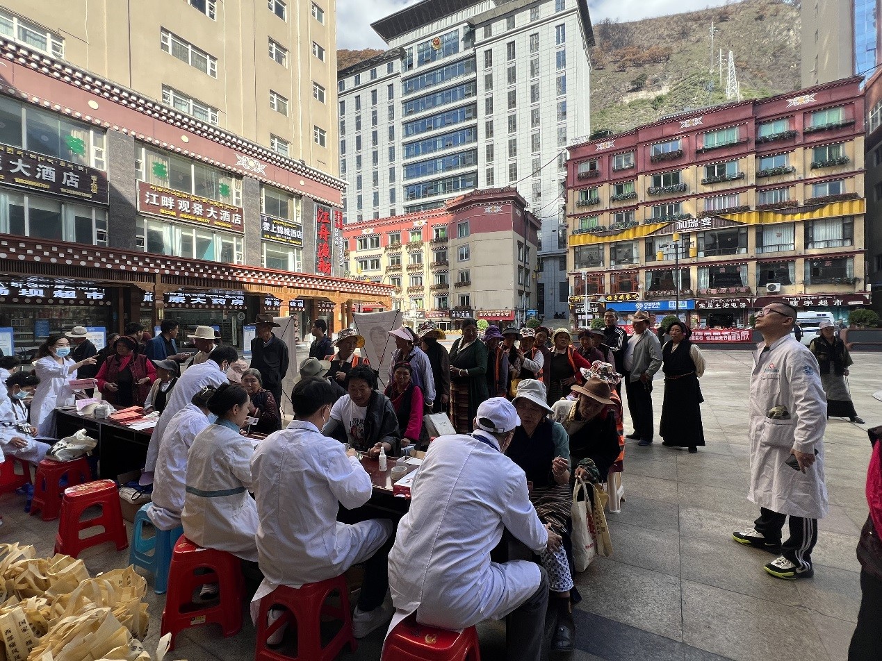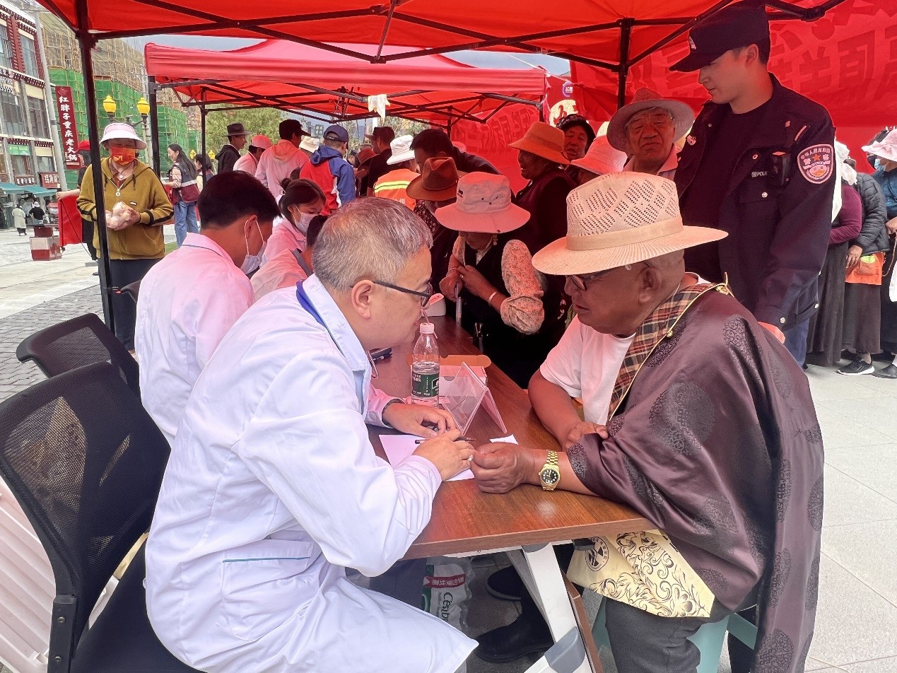 医疗团队刚停下车,便在木雅广场紧锣密鼓地开展起义诊。小小的县城几乎万人空巷,但凡有空的人都已经来到广场,迫不及待地想见到为高原送健康的西部痛风风湿医院医疗小队。我院医生也不负所望,医生通过专业的讲解和示范,向围得水泄不通的大家传授了风湿骨病的识别方法、预防措施以及早期筛查的重要性,提高了医务人员和人民群众对肺结节的认知水平和防治技能。